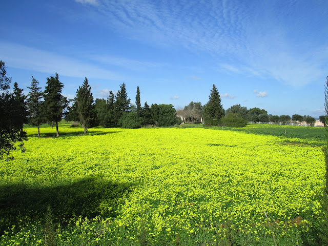 Amendoeiras em flor, branco e rosa, perfumando o céu.
